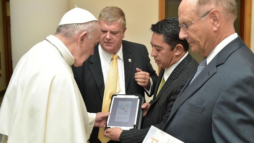 El Santo Padre recibió a los creadores del proyecto, Ricardo Grzona, presidente ejecutivo de la Fundación Ramón Pané, y Hugo Flores, director de estrategia digital, quienes le presentaron esta iniciativa que será una de las atracciones tecnológicas de la JMJ Panamá 2019.