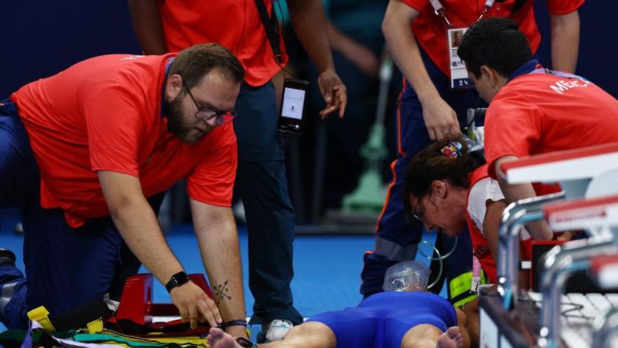 La siguiente prueba comenzó con retraso para dar tiempo al equipo de rescate a atender a la nadadora.