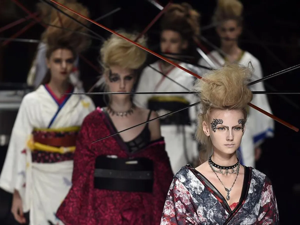 Modelos presentan las creaciones del diseñador Yoshiki en la pasarela del Mercedes-Benz Fashion Week en Tokyo, Japón.