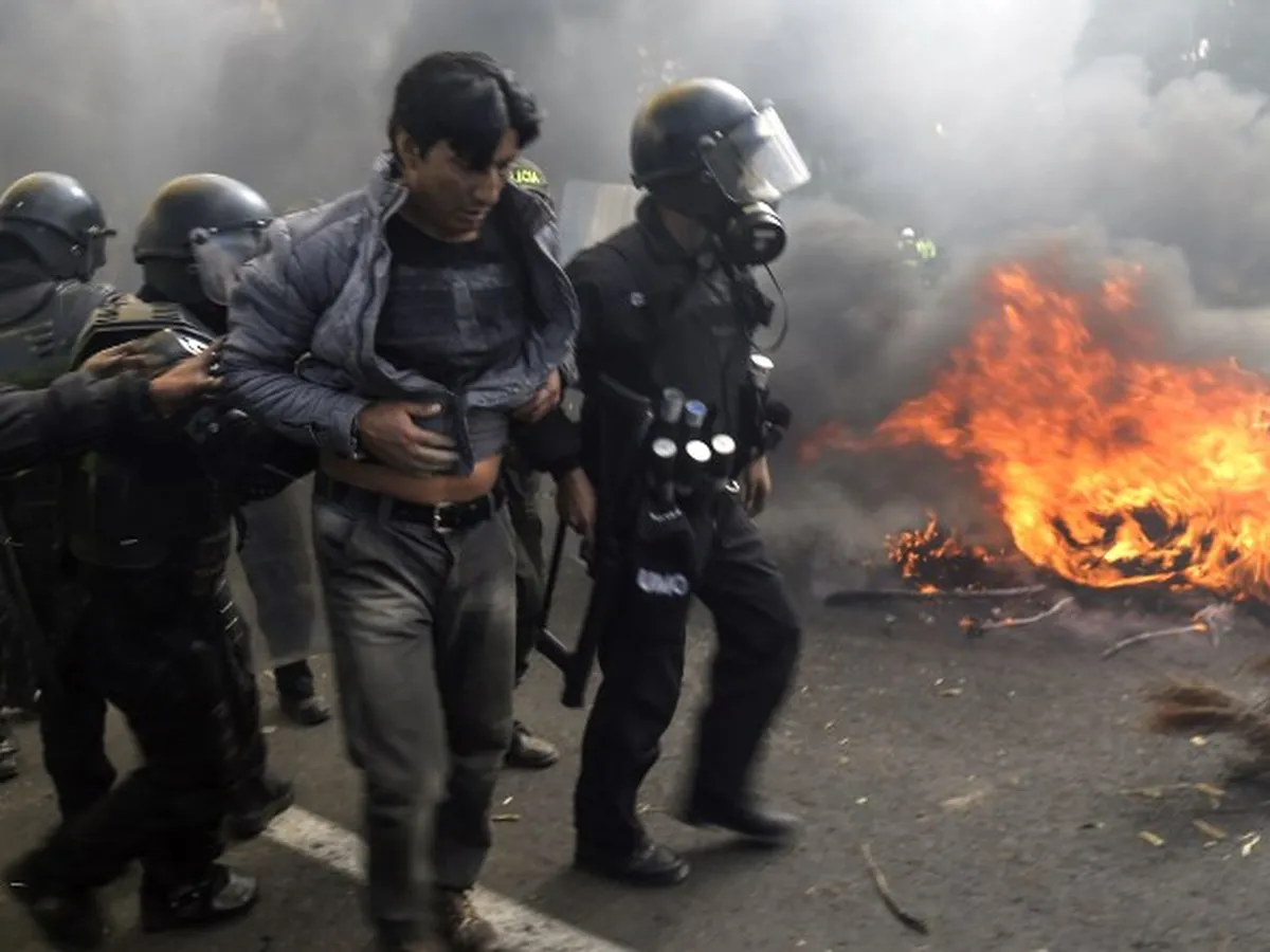 2/6Indígenas bloquean las calles de El Chasqui, Cotopaxi en Ecuador, durante la protesta organizada grupos indígenas opositores del gobierno de Rafael Correa.