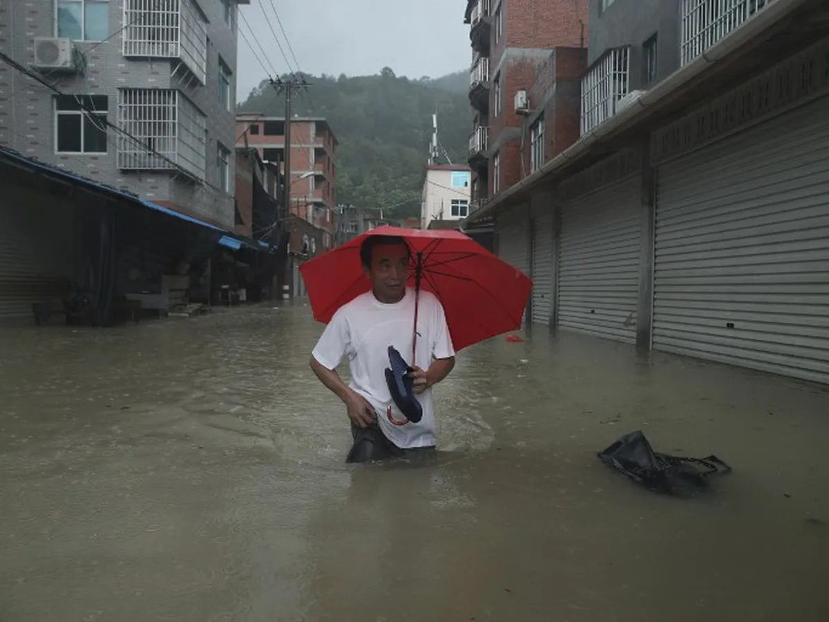 1/6Vehículos y residentes hacen su camino a través de una calle inundada en Wenling, en la provincia oriental china de Zhejiang, el 10 de agosto 2015, después que fuertes tormentas golpearon el área durante la recalada del tifón Soudelor.