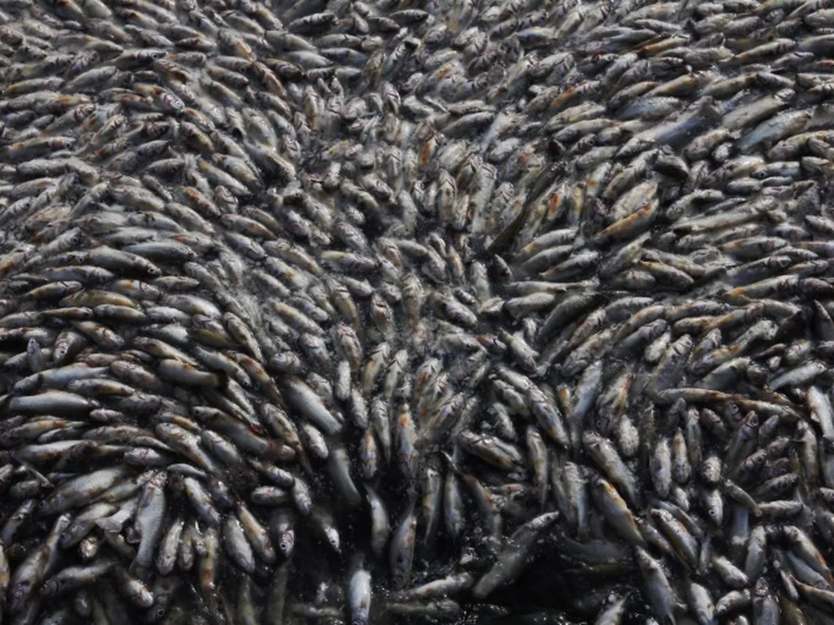 7/7Pescadores recogen peces muertos en la laguna de Cajititlán, México. Más de 25 toneladas de peces aparecieron muertos, se sospecha que sea culpable una planta de tratamiento de aguas residuales.