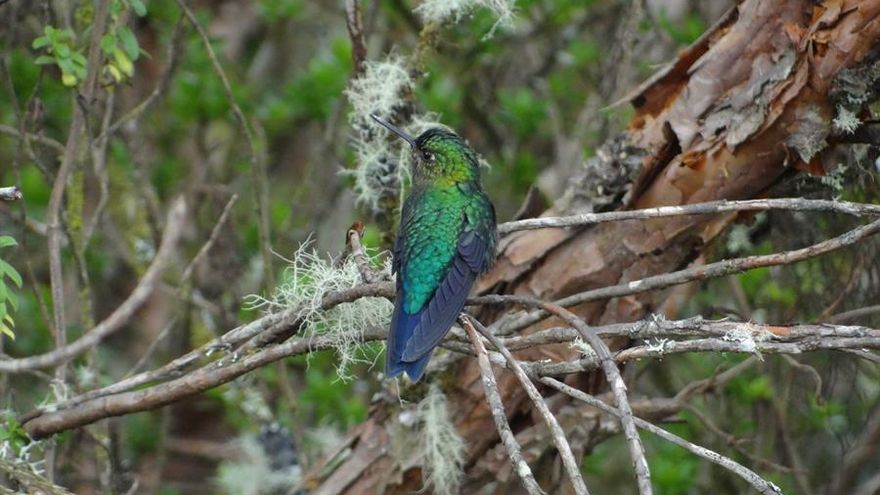 De unos siete centímetros y aproximadamente diez gramos de peso, con plumas negras en el pecho, pero azules y violetas en el resto del cuerpo dependiendo del reflejo del sol en su frenético vuelo, el colibrí en cuestión ha sido declarado el ave emblemática de la capital ecuatoriana... pero está bajo amenaza.