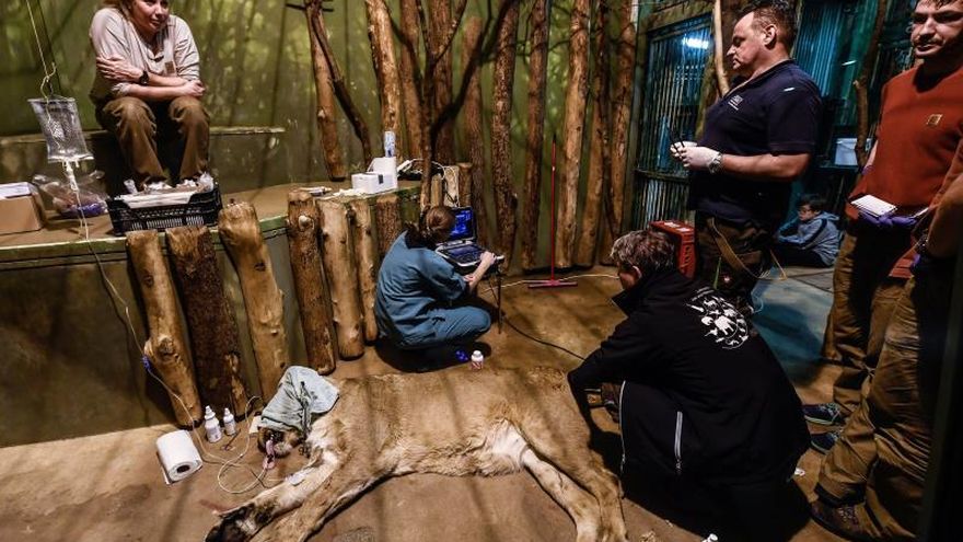 Un grupo de expertos de la República Checa y de Alemania, dirigidos por Thomas B. Hildebrandt, consiguieron dormir anoche a la leona Ginni tras aplicarle tres somníferos, para luego inseminarla con semen del león Sohan, un macho traído del zoo de Ostrava, en el este checo.