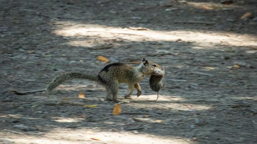 Entre junio y julio, los investigadores registraron 74 interacciones que involucraban ardillas terrestres de California y ratones, y el 42% de ellas involucraban la cacería de sus colegas roedores.