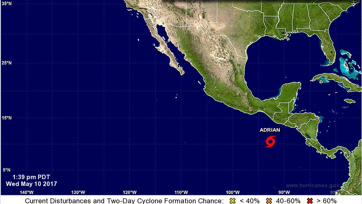 La primera tormenta de 2017 en el Pacífico este, bautizada Adrián, rompió un récord al formarse este miércoles frente a las costas de México en una fecha inusualmente temprana del año, informó el Centro Nacional de Huracanes local.