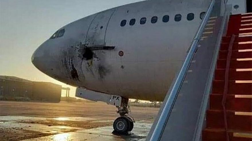 Los seis cohetes cayeron en zonas de estacionamiento y en las pistas, según estas fuentes. "Un avión civil [vacío] fue alcanzado y resultó dañado", indicaron las fuentes.