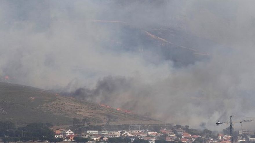 El fuego empezó el domingo en la emblemática montaña de la Mes, y se propagó hasta el campus de la Universidad de Ciudad del Cabo (UCT), obligando a centenares de estudiantes a abandonar sus residencias a pie.