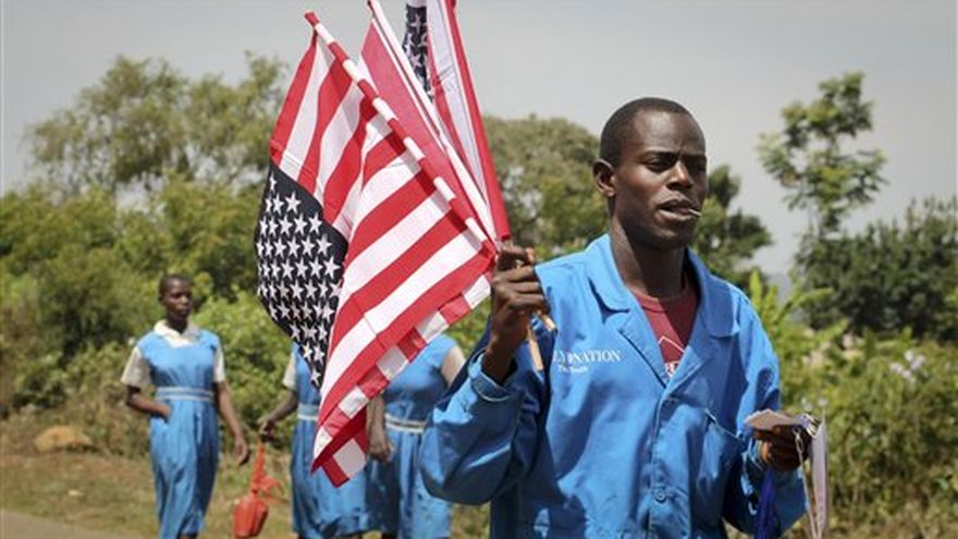 Un vendedor ofrece banderas estadounidenses en un evento que anticipa la visita del presidente Barack Obama a Kenia, en Kisumu, Kenia, 18 de julio de 2015. Obama realiza su primera visita desde que es presidente al país donde nació su padre. / AP