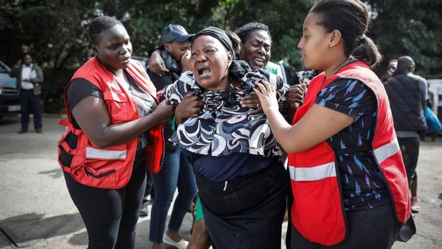 A pocos metros de la entrada del Dusit, en la morgue de Chiromo, decenas de personas acudieron hoy a intentar reconocer y recuperar los cuerpos de sus seres queridos, mientras que las ambulancias siguen llevando víctimas.