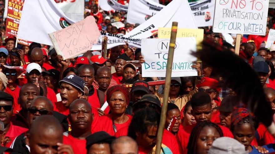 El motivo de la protesta es el descontento ante varias propuestas legislativas oficialistas, como la implementación de un salario mínimo de 20 rands por hora (unos 1,6 dólares).