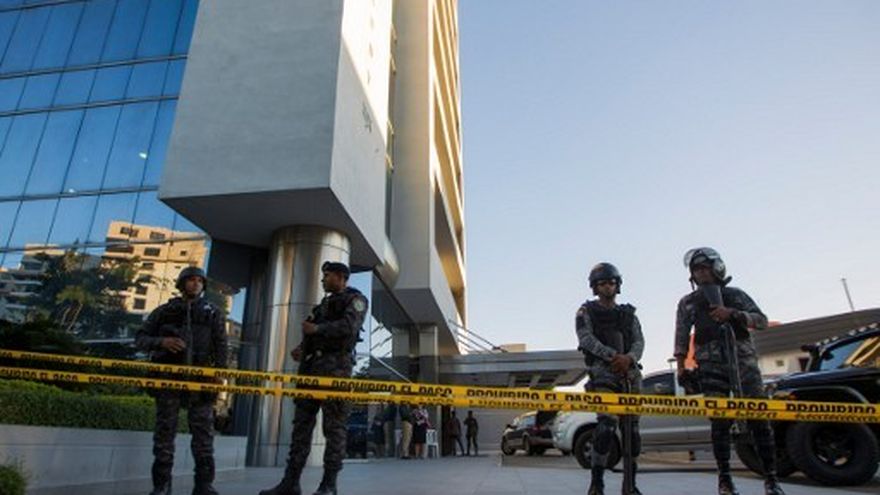Decenas de policías con armas largas cercaron el edificio donde están ubicadas las oficinas de Odebrecht, en el centro de la ciudad, mientras fiscales interrogaban a exfuncionarios vinculados a las licitaciones de obras que ganó esa firma en el país caribeño.
