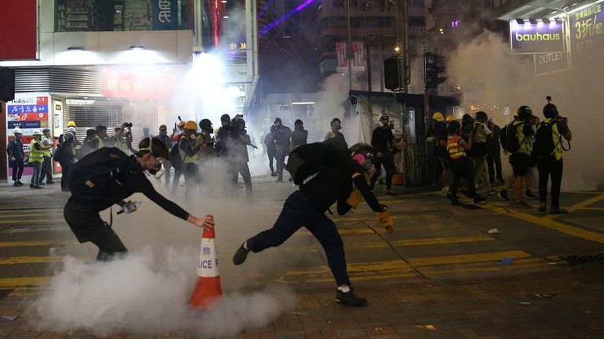 La policía de Hong Kong lanzó el sábado gases lacrimógenos para dispersar a los manifestantes prodemocracia cuyas marchas no había sido autorizada, al tiempo que en el aeropuerto internacional proseguía la sentada con la que pretenden sensibilizar a los visitantes con su movimiento.