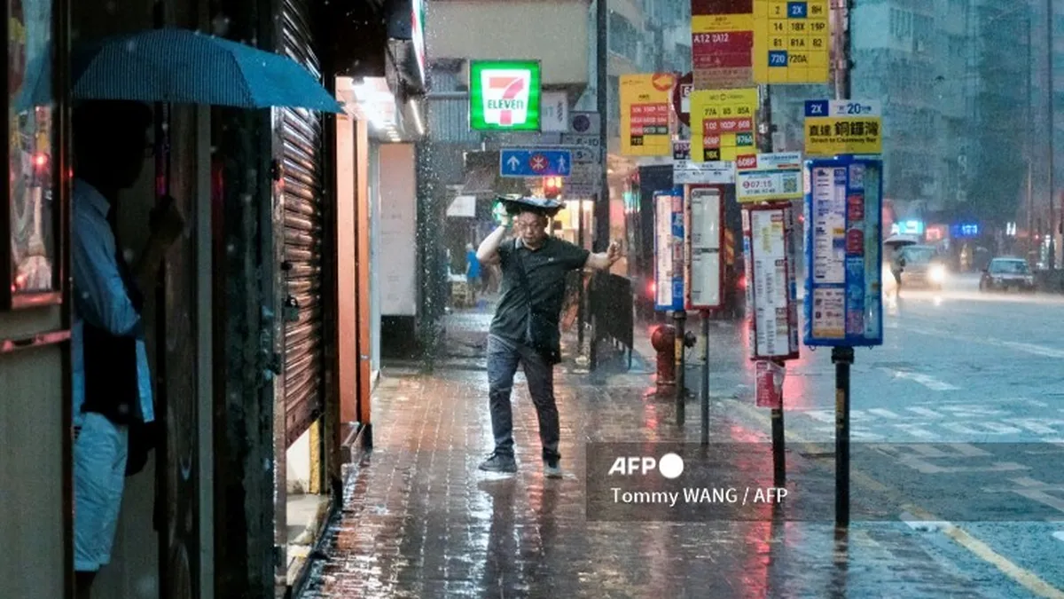 Un hombre camina bajo la lluvia en Hong Kong / AFP