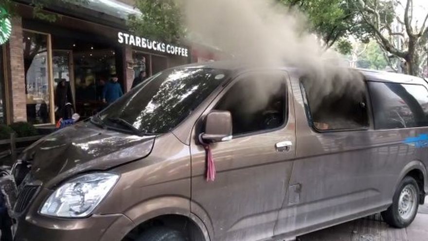 "La camioneta ya estaba en llamas cuando se salió de la calzada y se estrelló contra la acera", confirmó a la AFP Zhang Sai, un guardia de seguridad de un edificio vecino que presenció el incidente.