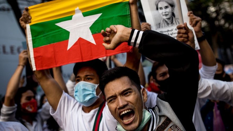 El sábado, miles de personas ya habían salido a las calles en varias ciudades del país para condenar el golpe de Estado del 1 de febrero que puso fin a diez años de frágil democracia.