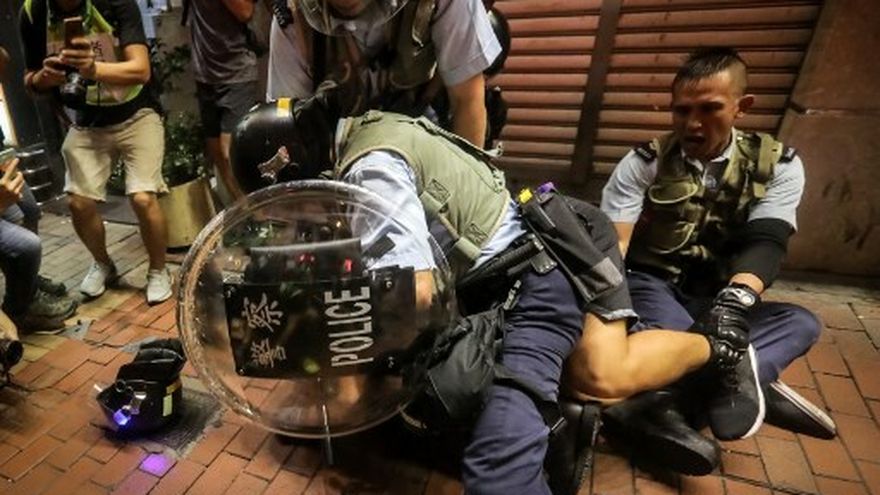 "Los hongkoneses se manifestaron pacíficamente contra la ley sobre las extradiciones y en consecuencia recibieron una paliza de la policía", escribió en Twitter Joshua Wong, uno de los líderes del movimiento prodemocrático de 2014 que acaba de salir de prisión.
