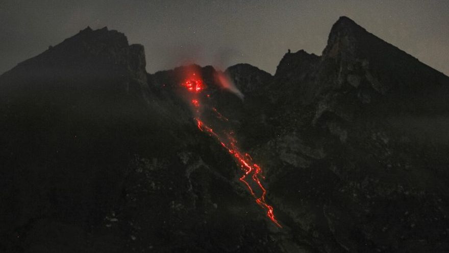 El Monte Merapi en Indonesia, uno de los volcanes más activos del mundo, arroja desde el jueves por la tarde ceniza y lava líquida, por lo que las autoridades instaron a los residentes a permanecer fuera de un radio de 5 kilómetros en torno al cráter.