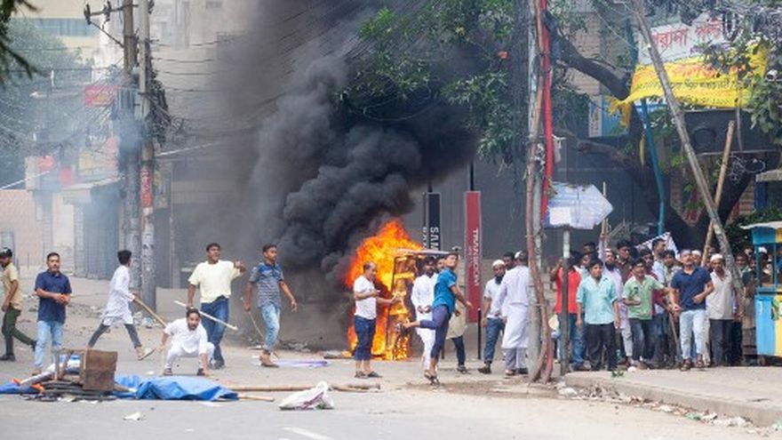 Por su parte, el ministro bangladesí del Interior, Asaduzzaman Khan, dijo a AFP que el toque de queda impuesto el sábado se mantendría "hasta que la situación mejore", pues algunos manifestantes incendiaron edificios gubernamentales y comisarías de policía.