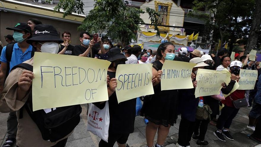 "Estamos aquí para exigir democracia y denunciar la falta de libertad de expresión", dijo a Efe Sinthorn, una recién licenciada de 23 años que se queja de que "el Gobierno y la monarquía gastan nuestro dinero y no hacen nada por nosotros".