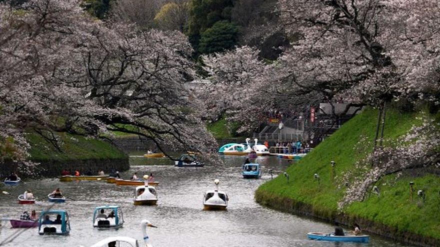 Las elegantes ramas oscuras repletas de flores blancas y amarillas (conocidas como "sakura" en japonés) se extendían por el foso del Palacio Imperial, para satisfacción de los curiosos que acudieron a tomarse fotos o simplemente contemplar el espectáculo.