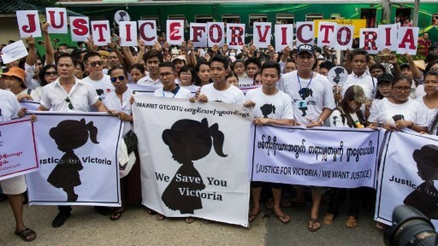 Los manifestantes marcharon este sábado en Rangún, la ciudad más grande del país, hasta la sede de la policía. Muchos iban vestidos de blanco, color de luto en ese país, exigiendo "justicia" para la niña, y también más seguridad para los niños.