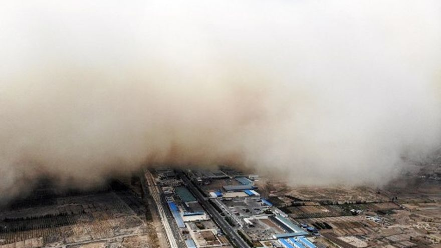 Una inmensa nube de arena cubrió viviendas, edificios y fábricas, causando contaminación y accidentes de tráfico en la provincia de Gansu, en el noroeste de China, donde las tormentas de arena son frecuentes durante la primavera boreal.