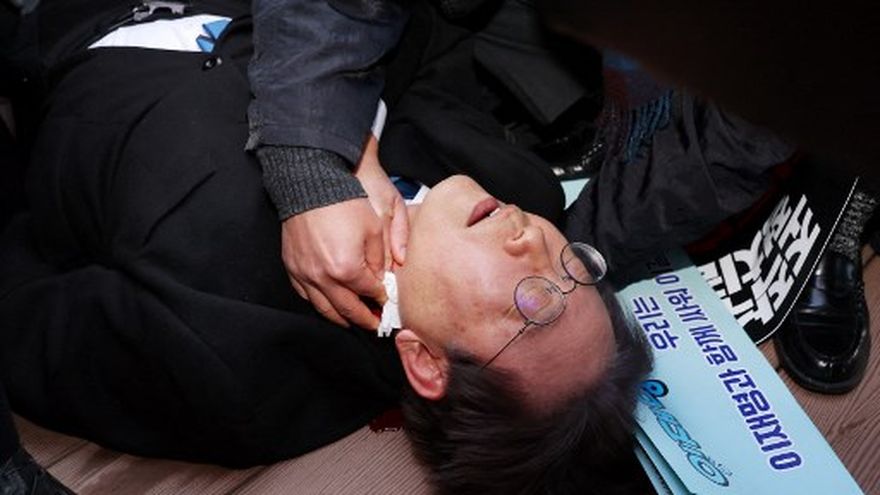 El político de oposición se dirigía a su auto mientras hablaba con periodistas "cuando el atacante le pidió un autógrafo", relató un testigo a la emisora local YTN.