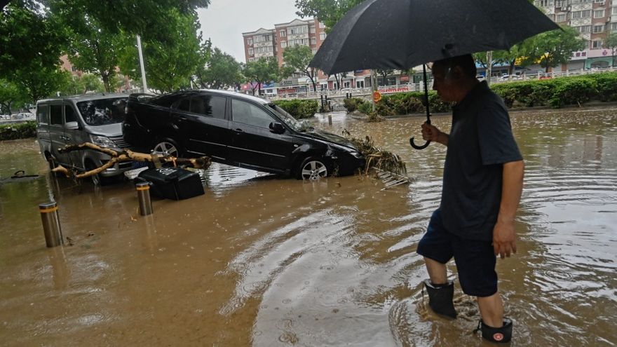 Estas lluvias torrenciales son consecuencia del ciclón Doksuri, que causó al menos seis muertos en Filipinas. Ha perdido un poco de fuerza y, desde el viernes, esta tormenta tropical golpea el norte de China.