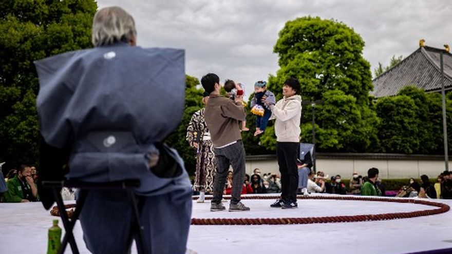 Tokio, Japón/Decenas de bebés con lágrimas en el rostro se enfrentaron el sábado en un ritual tradicional japonés llamado "sumo llorón" que, según las creencias, brinda buena salud a los niños y que regresó por primera vez después de cuatro años de pandemia.