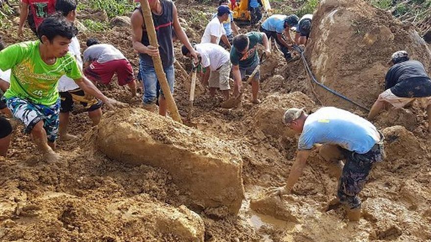 Equipos de rescate, apoyados por grúas, buscaban este lunes en el este de Filipinas a más de 30 personas desaparecidas en los corrimientos de tierra provocados por una tormenta durante el fin de semana, informaron las autoridades.