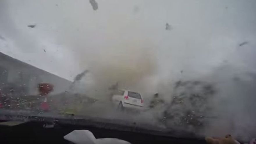 Un conductor viajaba por la ciudad de Tainan y detuvo repentinamente su automóvil al darse cuenta que un tornado estaba bastante cerca. Logró ponerse a salvo gracias a su maniobra, según el video de YouTube.