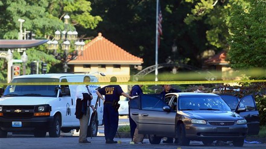 Minutos después, un vehículo plateado o gris ocupado por cuatro personas, incluidos los peatones, se detuvo frente al auto del sargento. El pistolero bajó del auto y abrió fuego para luego huir a pie mientras se alejaba el vehículo de los sospechosos.