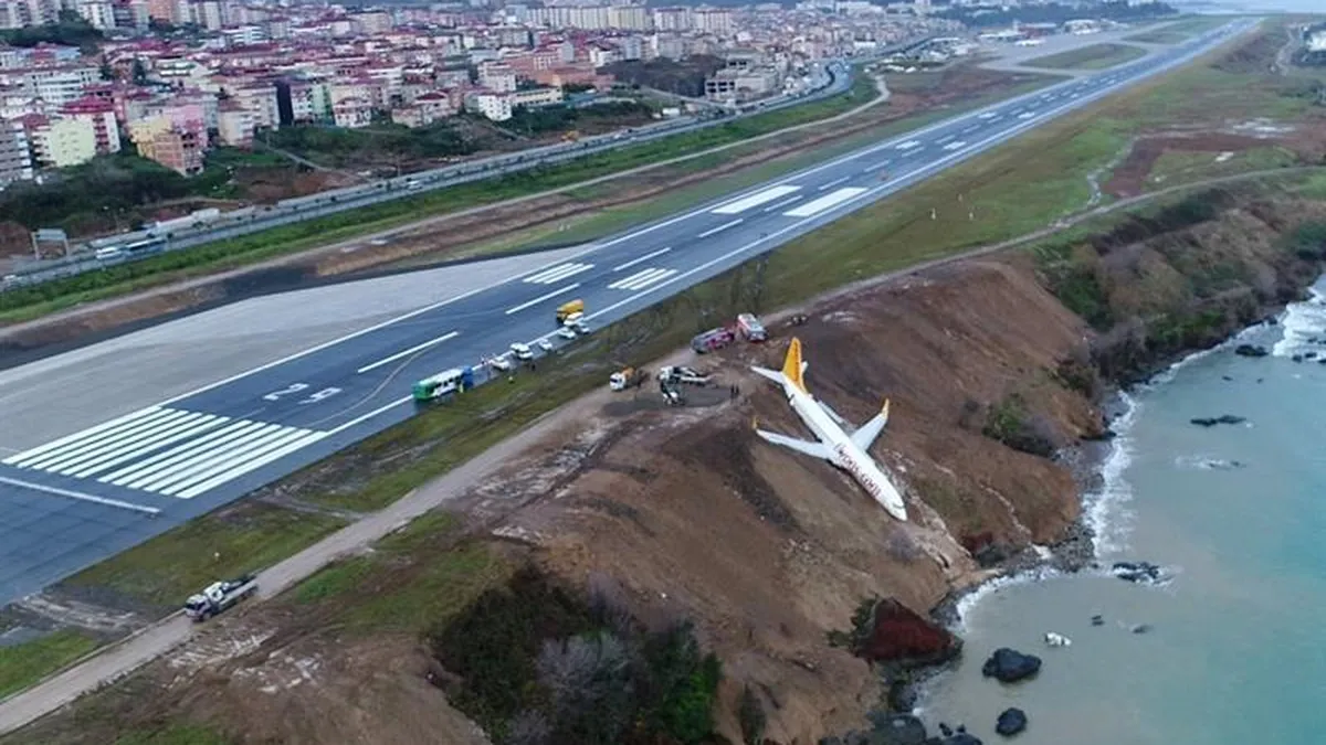 Un avión que estaba aterrizando el sábado por la noche en el aeropuerto de Trebisonda, en el norte de Turquía, se salió de la pista y estuvo a punto de caer al agua pero finalmente no se produjeron daños entre pasajeros y tripulación, indicaron este domingo varios medios.