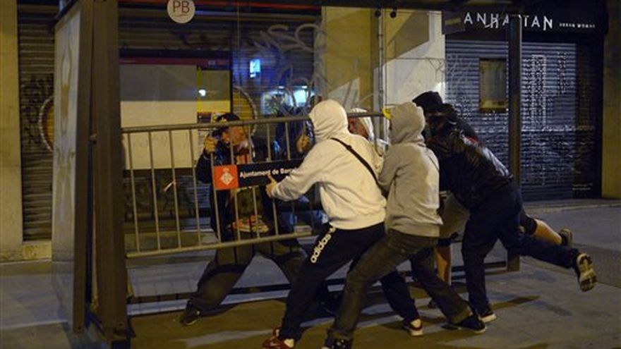 Una vocera de la policía informó que luego de una protesta pacífica realizada el jueves entrada la noche, unos 60 jóvenes comenzaron a lanzar piedras, atacar tiendas e incendiar contenedores de basura en el distrito de Sants, en el centro de la ciudad.
