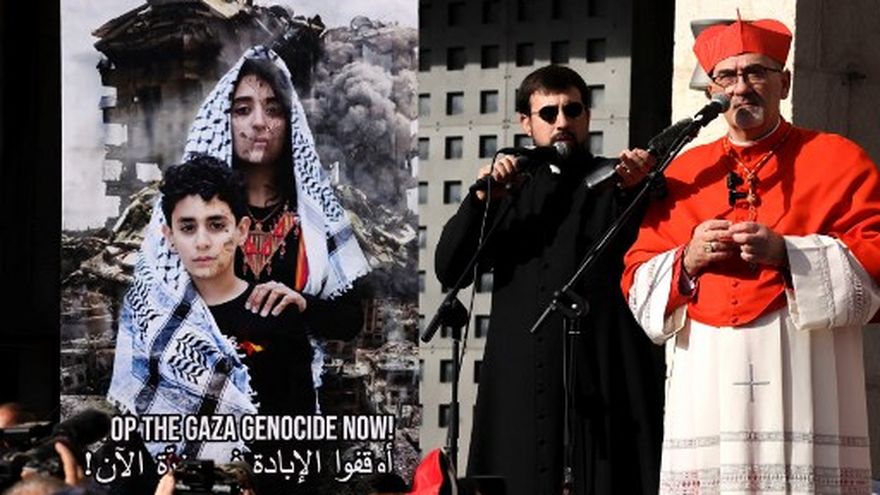 Detrás de ellos, el patriarca Pizzaballa relató que acaba de llegar de Gaza.