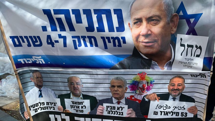 Carteles electorales de apoyo al ex primer ministro israelí, Benjamín Netanyahu en una calle de Israel. / EFE