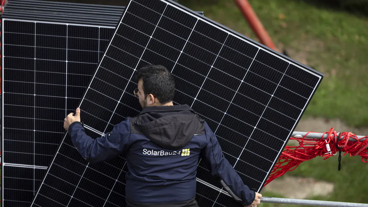 Nazari, con una barba corta y con anteojos redondos de metal, observa subido en un andamio a tres de sus empleados instalar paneles fotovoltaicos en el tejado de una escuela, diez años después de su llegada a Alemania en la gran ola migratoria de 2015. "Viví sin electricidad durante siete años. Quería entender por qué todo el mundo aquí tenía electricidad y no en Afganistán", explica.