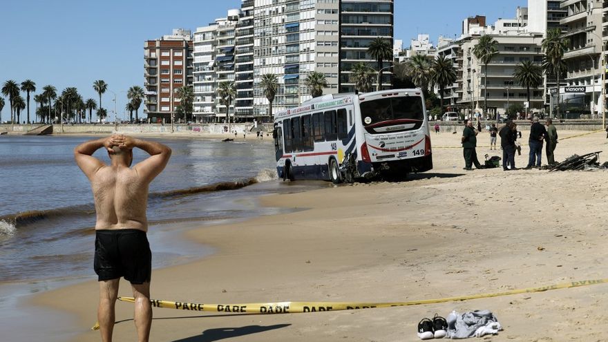 Según el reporte, un bus de la línea 121 de la empresa Cutcsa atravesó el muro de contención de la rambla (paseo costero) "colisionando contra la playa Pocitos, terminando en la orilla del agua" del Río de la Plata.