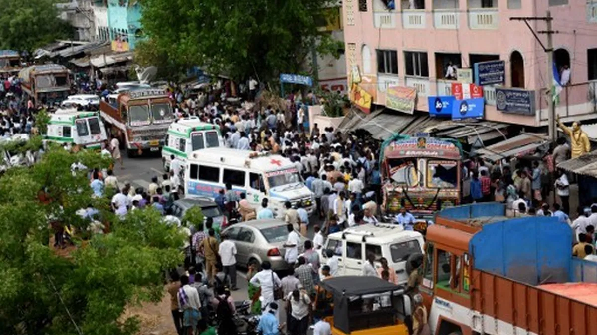 Después de chocar contra un poste eléctrico, el camión se precipitó contra la multitud de manifestantes que protestaba contra la extracción ilegal de arena delante de una comisaría de policía del Estado de Andra Pradesh.