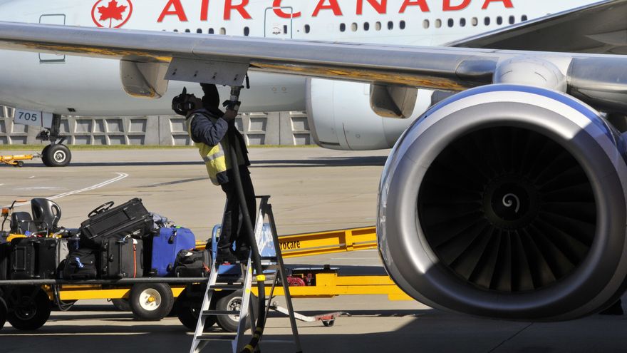 un avión de Avión de Air Canada antes de su despegue en el aeropuerto internacional de Sidney (Australia). / EFE