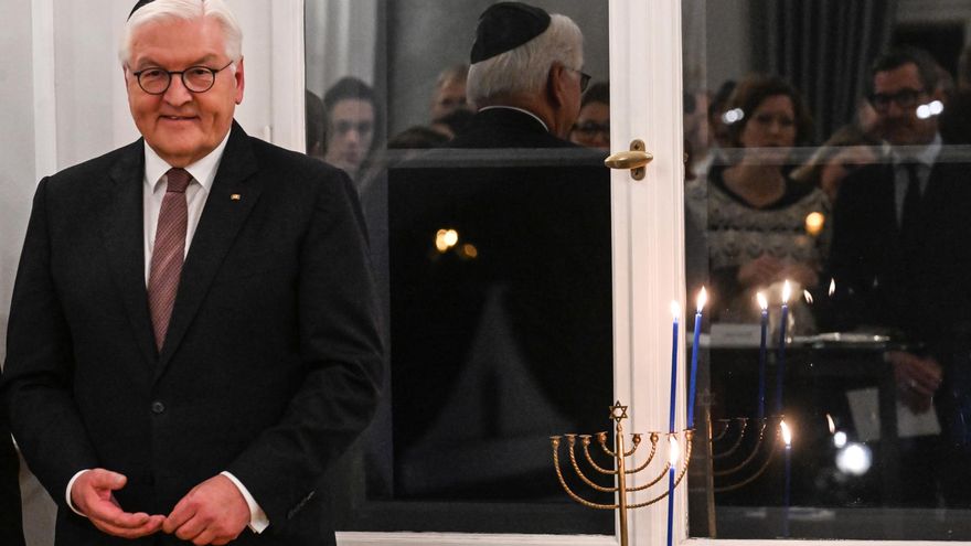 El mismo candelabro fue encendido este lunes en el castillo de Bellevue, que es la residencia del jefe del Estado alemán, con motivo de Janucá, la fiesta religiosa de las luces que comenzó el domingo.