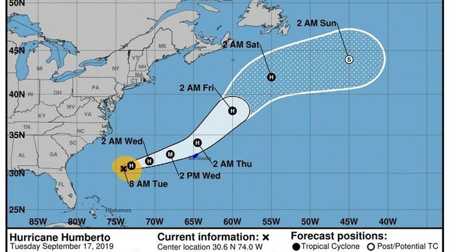 Mientras Humberto dejó ya atrás, sin causar víctimas, Bermudas y se dirige al norte con vientos máximos sostenidos de 175 kilómetros por hora, tras pasar de largo por la costa occidental del archipiélago.