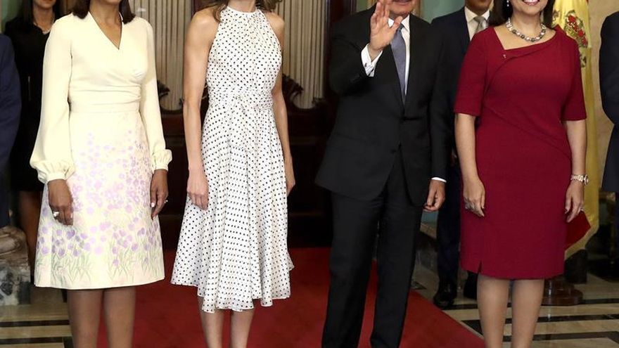 El presidente de la República Dominicana, Danilo Medina, y su esposa, Cándida de Montilla, junto a varios miembros del Gobierno, ofrecieron este lunes un almuerzo a la reina de España durante su visita al país caribeño para conocer proyectos de la cooperación española.