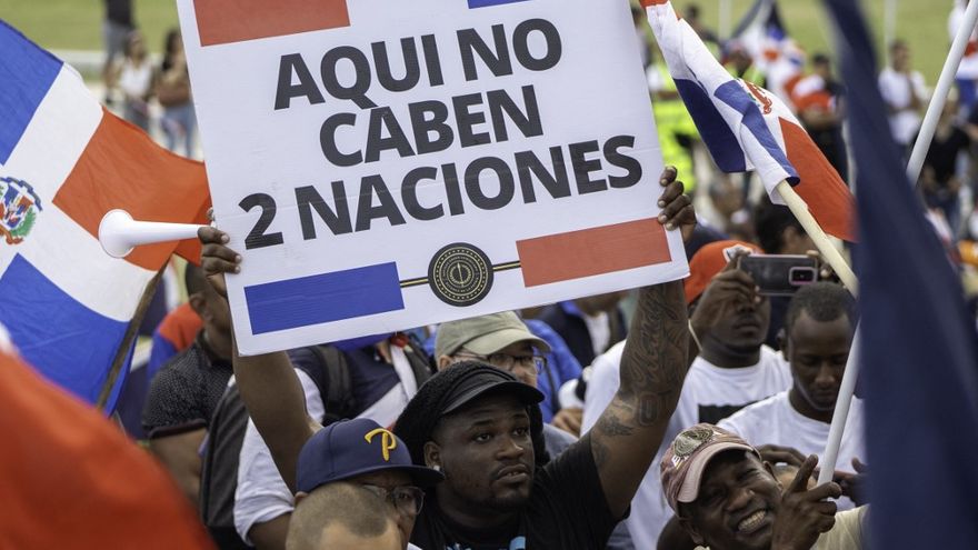 Cientos de dominicanos protestaron este sábado en Santo Domingo para exigir al presidente Luis Abinader que cumpla con la promesa de deportar semanalmente a 10.000 haitianos indocumentados y hacer cumplir el control migratorio para evitar que regresen. "¡Fuera los haitianos!", "Si Abinader no los saca, los sacamos nosotros", "¡No a la invasión de haitianos!", gritaban los manifestantes en la Plaza de la Bandera, una de las zonas más transitadas de la ciudad, mientras portaban banderas dominicanas y pitos.