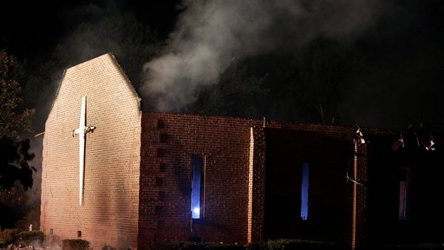 El miércoles por la mañana solo seguían en pie los muros de ladrillo de la iglesia en Greeleyville. El techo se derrumbó y las ventanas altas no tenían vidrios. El costado de la iglesia frente a la ruta rural mostraba una cruz blanca parcialmente carbonizada.