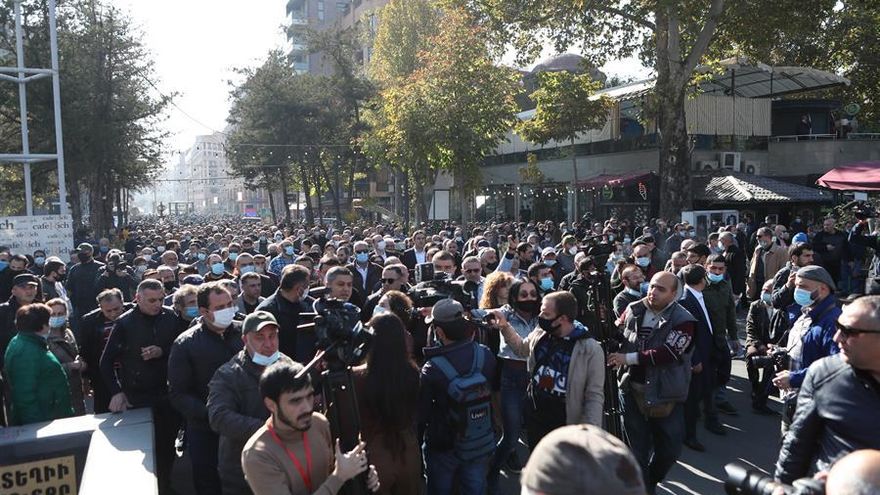 La Fiscalía General de Armenia difundió previamente un mensaje en el que pidió a los ciudadanos no acudir a la manifestación, puesto que su celebración no estaba autorizada por la ley marcial que Pashinián impuso tras el estallido de la guerra en el Karabaj el pasado 27 de septiembre.