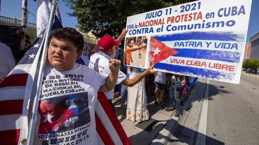 Miami/Cientos de miembros de la comunidad cubana de Miami se manifestaron este lunes en la ciudad estadounidense para recordar las históricas protestas celebradas hace justo un año en Cuba contra el gobierno de Miguel Díaz-Canel.