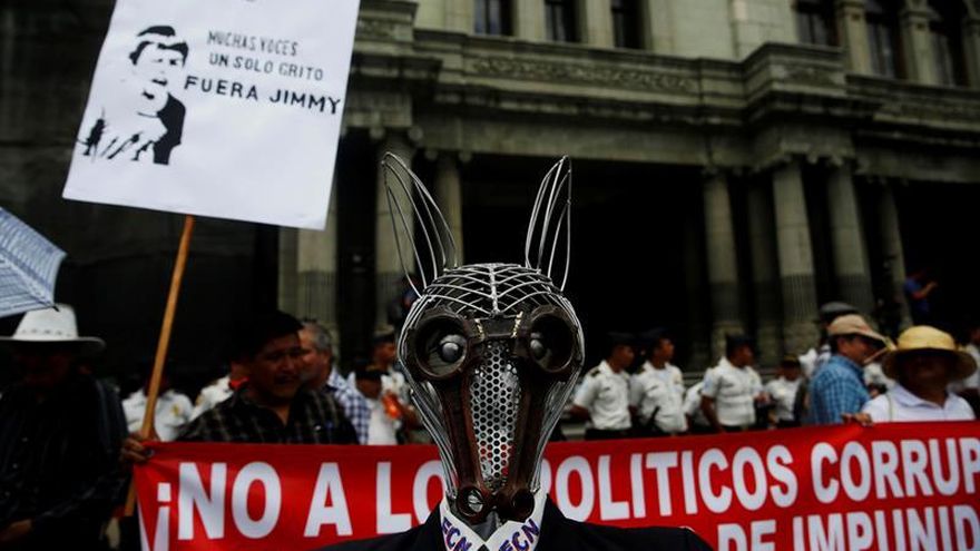 Centenares de campesinos exigen hoy la renuncia del presidente de Guatemala, Jimmy Morales, y expresan su respaldo a la Comisión Internacional Contra la Impunidad en Guatemala (Cicig).