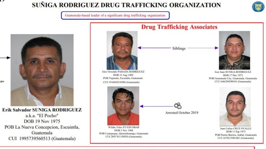 Durante esas pesquisas se descubrió que Súñiga Rodríguez era "un miembro de la organización y fue responsable de transportar, dirigir y manejar una porción de las actividades del tráfico de cocaína de la organización en Guatemala", afirmó la misma fuente.